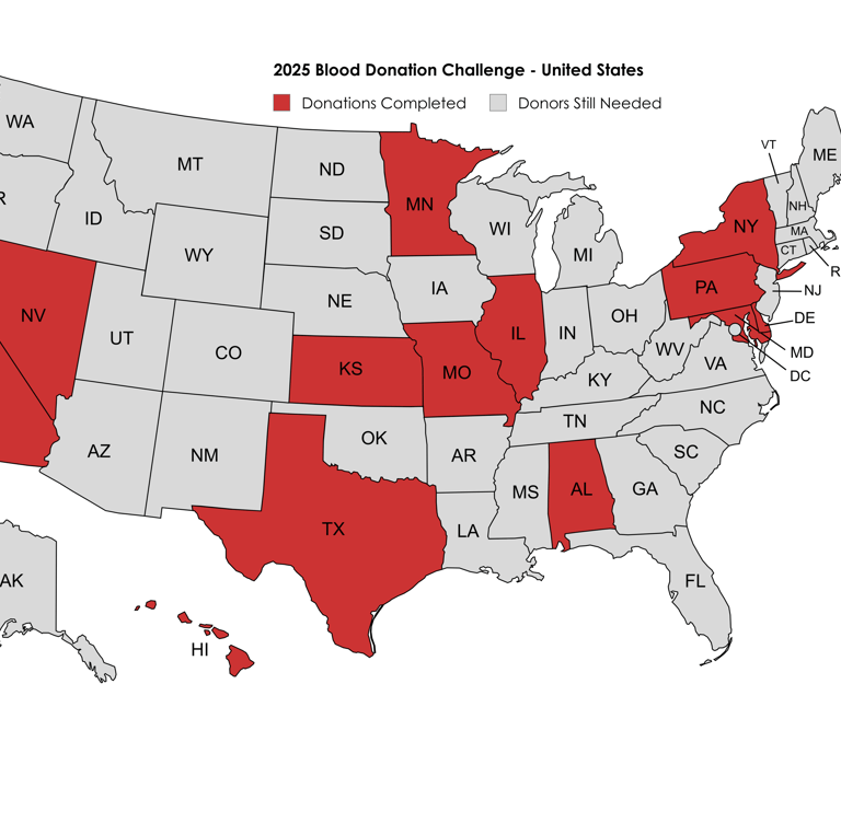My 50-State Blood Donation Journey started in 2008 when I began a new job with Elanco Animal Health. This year, as I reach my 50th State, I welcome you to join me in this challenge. Collectively, we can donate blood or platelets in all 50 states & around the world.